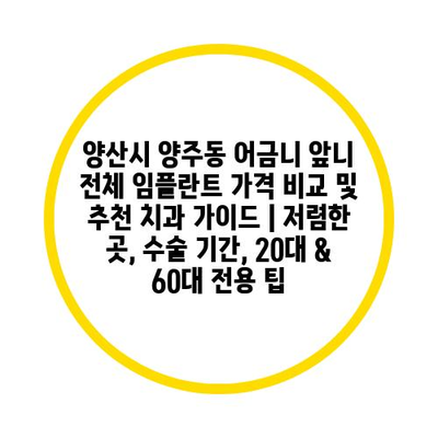 “양산시에서의 임플란트 가격은 다양한 요인에 따라 차이가 나며, 전문가의 추천을 받는 것이 중요합니다.”