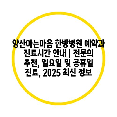 양산아는마음 한방병원 예약과 진료시간 공지 | 전연락 추천, 일요일 및 공휴일 진료, 2025 최신 정보 에 대해 자주 묻는 질문 TOP 5