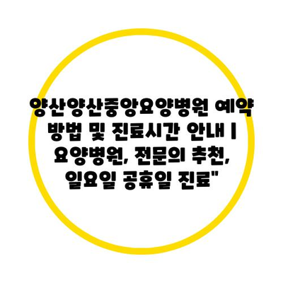 ✅ 양산양산중앙요양병원의 예약 방법을 지금 알아보세요!