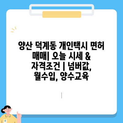양산 덕계동 넘버값| 최신 시세와 매매 정보