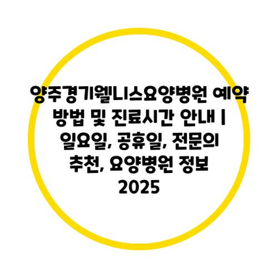 양주경기웰니스요양병원 예약 방법 및 진료시간 공지 | 일요일, 공휴일, 전연락 추천, 요양병원 정보 2025에 대해 자주 묻는 질문 TOP 5