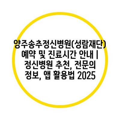 양주송추정신병원(성람재단) 예약 및 진료시간 공지 | 정신병원 추천, 전연락 정보, 앱 활용법 2025
