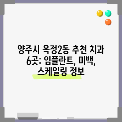 💡 양주시 옥정2동에서 최고의 치과 정보를 알아보세요! 💡