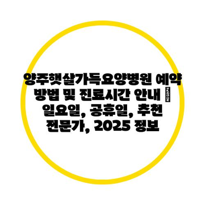 양주햇살가득요양병원 예약 방법 및 진료시간 공지 | 일요일, 공휴일, 추천 전문가, 2025 정보 에 대해 자주 묻는 질문 TOP 5