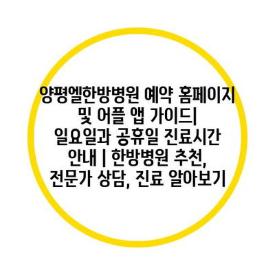 ✅ 양평엘한방병원의 예약 방법과 앱 사용법을 자세히 알아보세요.