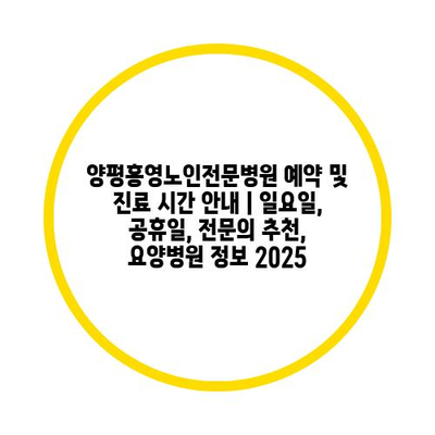 양평홍영노인전문병원 예약 및 진료 시간 공지 | 일요일, 공휴일, 전연락 추천, 요양병원 정보 2025 에 대해 자주 묻는 질문 TOP 5