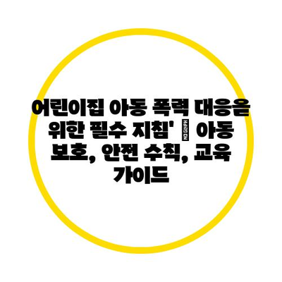어린이집 아동 폭력 대응을 위한 필수 방법’ | 아동 보호, 안전 수칙, 교육 설명서를 소개합니다.