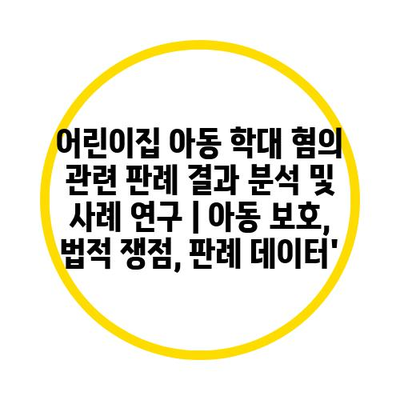 어린이집 아동 학대 혐의 관련 판례 결과 분석 및 사례 연구는 우리 사회에서 아동 보호의 중요성을 일깨워 줍니다.