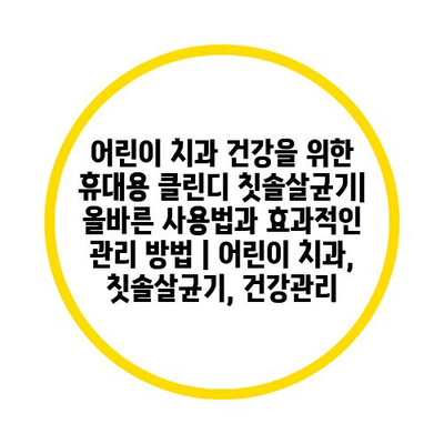 어린이 치과 건강을 위한 휴대용 클린디 칫솔살균기| 올바른 사용법과 효과적인 관리 방법 | 어린이 치과, 칫솔살균기, 건강관리