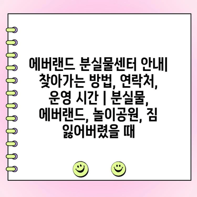걱정하지 마세요! 에버랜드는 분실물센터를 운영하여 고객님의 소중한 물건을 찾아드리기 위해 최선을 다하고 있습니다. 에버랜드 분실물센터는 어디에 위치하고, 어떻게 연락할 수 있는지 자세히 알려알려드리겠습니다.