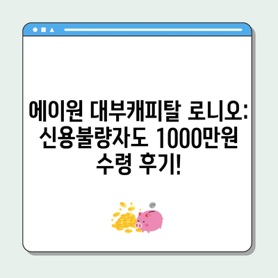 에이원 대부캐피탈 로니오: 신용불량자도 1000만원 수령 후기!