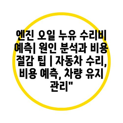 엔진 오일 누유 수리비 예측| 원인 분석과 비용 절감 팁 | 자동차 수리, 비용 예측, 차량 유지 관리”