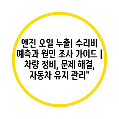 수리비 예측은 문제의 원인과 차량의 연식, 부품의 비용 등에 따라 달라집니다. 일반적으로 오일 누출이 발생하는 경우, 작은 수리 비용은 5만 원대에서 시작할 수 있으며, 큰 문제일 경우 수십만 원 이상의 비용이 들어갈 수 있습니다. 수리비를 미리 예측하기 위해서는 정비소에서 정확한 진단을 받는 것이 중요합니다.
