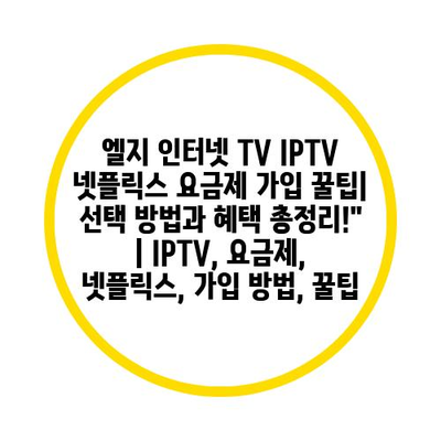 엘지 인터넷 TV IPTV 넷플릭스 요금제 가입 꿀팁| 선택 방법과 혜택 총정리!” | IPTV, 요금제, 넷플릭스, 가입 방법, 꿀팁 에 대해 자주 묻는 질문 TOP 5