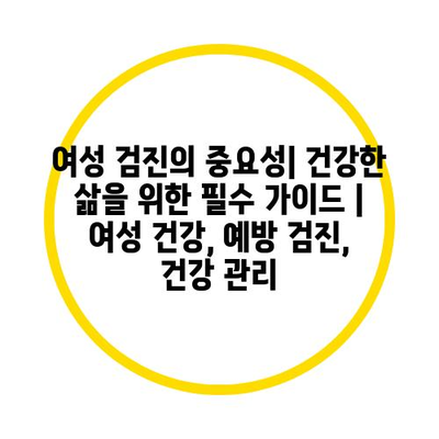 여성 검진의 중요성| 건강한 삶을 위한 필수 설명서 | 여성 건강, 예방 검진, 건강 관리는 모든 여성에게 매우 중요한 주제입니다.