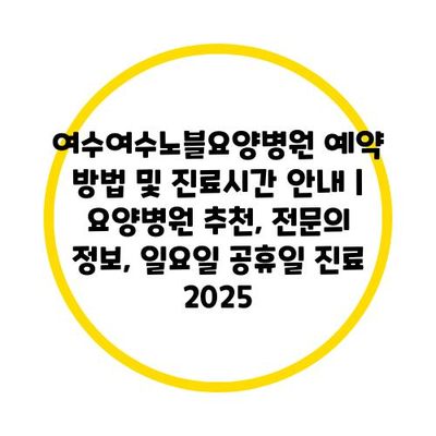 여수여수노블요양병원 예약 방법 및 진료시간 공지 | 요양병원 추천, 전연락 정보, 일요일 공휴일 진료 2025 에 대해 자주 묻는 질문 TOP 5