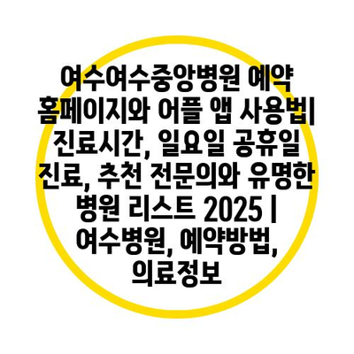 여수여수중앙병원 예약 홈페이지와 어플 앱 사용법| 진료시간, 일요일 공휴일 진료, 추천 전연락와 유명한 병원 리스트 2025 | 여수병원, 예약방법, 의료정보 에 대해 자주 묻는 질문 TOP 5