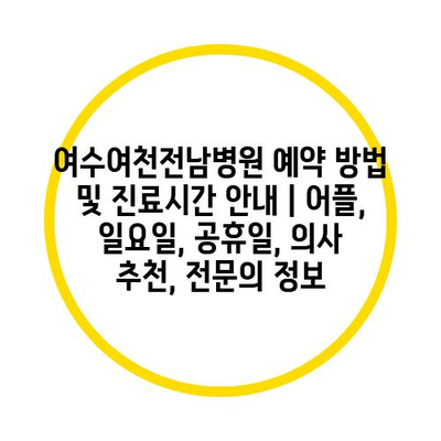여수여천전남병원 예약 방법 및 진료시간 안내 | 어플, 일요일, 공휴일, 의사 추천, 전문의 정보