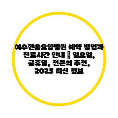 여수현송요양병원 예약 방법과 진료시간 공지 | 일요일, 공휴일, 전연락 추천, 2025 최신 정보 에 대해 자주 묻는 질문 TOP 5