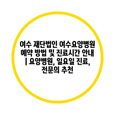 여수 재단법인 여수요양병원 예약 방법 및 진료시간 안내 | 요양병원, 일요일 진료, 전문의 추천