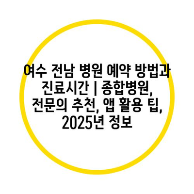 여수 전남 병원 예약 방법과 진료시간 | 종합병원, 전연락 추천, 앱 활용 팁, 2025년 정보에 대해 자주 묻는 질문 TOP 5