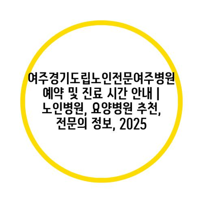 여주경기도립노인전문여주병원 예약 및 진료 시간 공지 | 노인병원, 요양병원 추천, 전연락 정보, 2025 에 대해 자주 묻는 질문 TOP 5