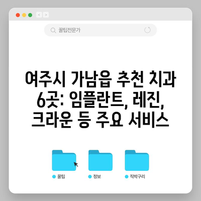 여주시 가남읍 추천 치과 6곳: 임플란트, 레진, 크라운 등 주요 서비스