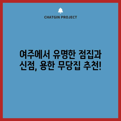💡 여주의 유명한 점집 정보를 지금 바로 알아보세요! 💡