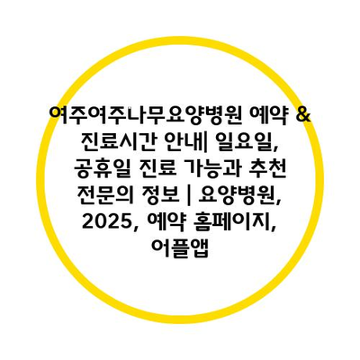여주여주나무요양병원 예약 & 진료시간 공지| 일요일, 공휴일 진료 가능과 추천 전연락 정보 | 요양병원, 2025, 예약 홈페이지, 어플앱 에 대해 자주 묻는 질문 TOP 5