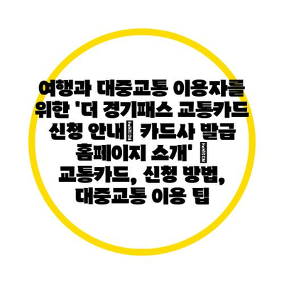 여행과 대중교통 이용자를 위한 ‘더 경기패스 교통카드 신청 안내| 카드사 발급 홈페이지 소개’ | 교통카드, 신청 방법, 대중교통 이용 팁