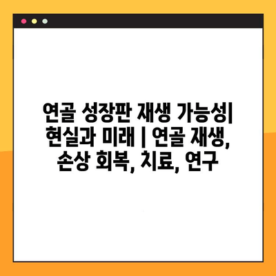 연골 성장판 재생 가능성| 현실과 미래 | 연골 재생, 손상 회복, 치료, 연구