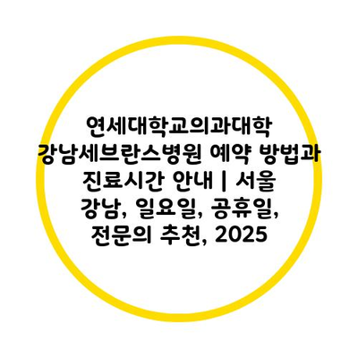 연세대학교의과대학 강남세브란스병원 예약 방법과 진료시간 공지 | 서울 강남, 일요일, 공휴일, 전연락 추천, 2025에 대한 내용을 알려알려드리겠습니다.