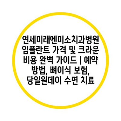 연세미래엔미소치과병원 임플란트 가격 및 크라운 비용 완벽 가이드 | 예약 방법, 뼈이식 보험, 당일원데이 수면 치료