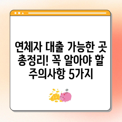 Meta Description: 연체자 대출 가능한 곳과 대출 시 주의사항을 총정리했습니다. 대출받을 방법과 팁을 자세히 확인해보세요!