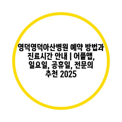 ✅ 영덕영덕아산병원 예약 방법을 자세히 알아보세요.