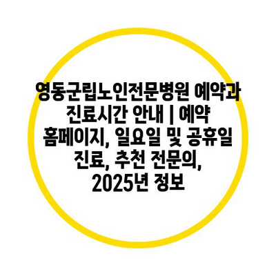 영동군립노인전문병원 예약과 진료시간 공지 | 예약 홈페이지, 일요일 및 공휴일 진료, 추천 전연락, 2025년 정보 에 대해 자주 묻는 질문 TOP 5