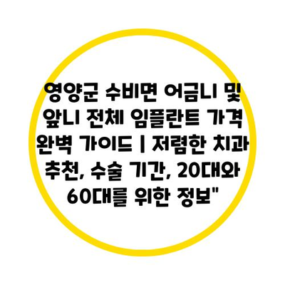 영양군 수비면 어금니 및 앞니 전체 임플란트 가격 완벽 가이드 | 저렴한 치과 추천, 수술 기간, 20대와 60대를 위한 정보”