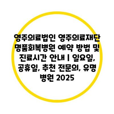 영주의료법인 영주의료재단 명품회복병원 예약 방법 및 진료시간 공지 | 일요일, 공휴일, 추천 전연락, 유명 병원 2025 에 대해 자주 묻는 질문 TOP 5