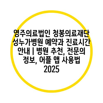 영주의료법인 청봉의료재단 성누가병원 예약과 진료시간 공지 | 병원 추천, 전연락 정보, 어플 앱 사용법 2025 에 대해 자주 묻는 질문 TOP 5