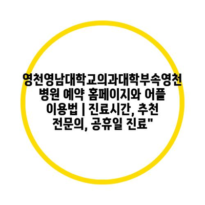 영천영남대학교의과대학부속영천병원 예약 홈페이지와 어플 이용법 | 진료시간, 추천 전연락, 공휴일 진료” 에 대해 자주 묻는 질문 TOP 5