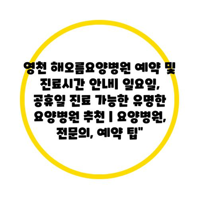 ✅ 영천 해오름요양병원 예약 및 진료 절차를 자세히 알아보세요.