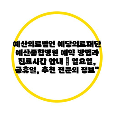 ✅ 예산종합병원의 예약 방법과 진료시간을 지금 바로 알아보세요!