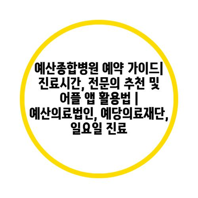 ✅ 예산종합병원의 진료시간과 예약 방법을 지금 알아보세요!