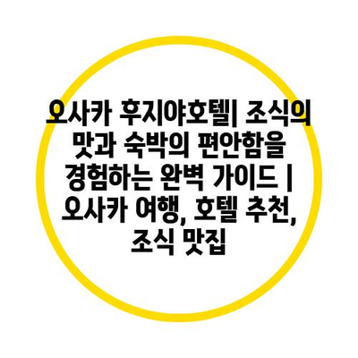 ✅ 오사카 후지야호텔의 특별한 조식 메뉴를 지금 바로 알아보세요!