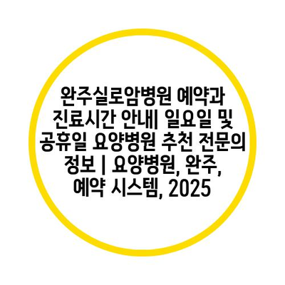 완주실로암병원 예약과 진료시간 공지| 일요일 및 공휴일 요양병원 추천 전연락 정보 | 요양병원, 완주, 예약 시스템, 2025 에 대해 자주 묻는 질문 TOP 5