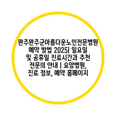 ✅ 완주군 아름다운 노인 전문병원 예약 방법을 자세히 알아보세요.