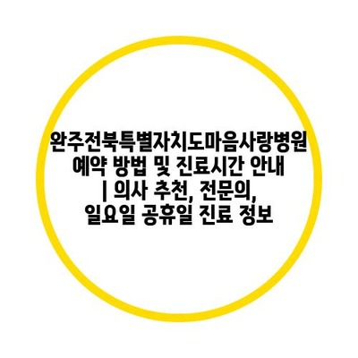 ✅ 완주전북특별자치도 마음사랑병원의 진료시간과 예약 방법을 상세히 알려드립니다.
