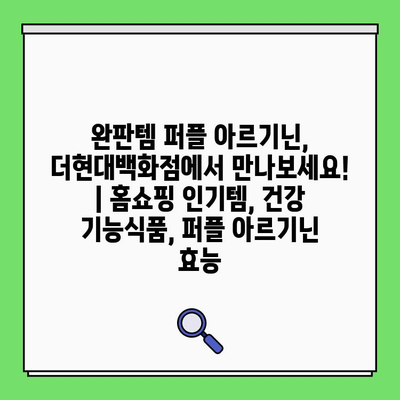 완판템 퍼플 아르기닌, 더현대백화점에서 만나보세요! | 홈쇼핑 인기템, 건강 기능식품, 퍼플 아르기닌 효능