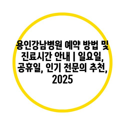 용인강남병원 예약 방법 및 진료시간 공지 | 일요일, 공휴일, 인기 전연락 추천, 2025