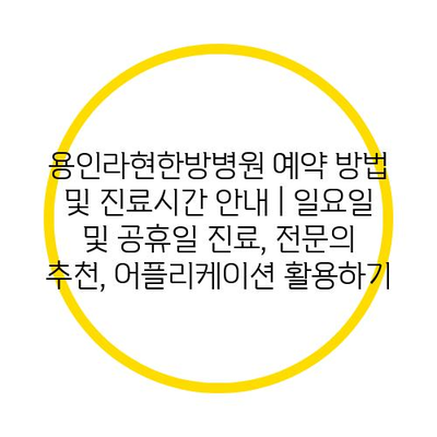 용인라현한방병원 예약 방법 및 진료시간 안내 | 일요일 및 공휴일 진료, 전문의 추천, 어플리케이션 활용하기